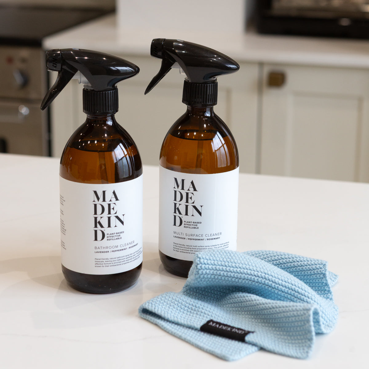 MadeKind natural cleaning products contain a unique blend of Lavender, Rosemary and Peppermint essential oils which leave your home smelling clean, fresh and like a spa!